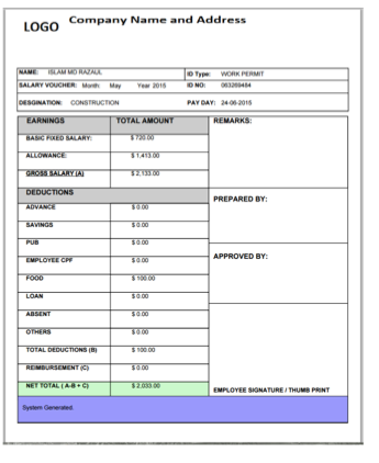 Payroll Generator takes the hassle out of payroll administration. Statutory deductions and contributions are calculated automatically (CPF, CDAC, ECF, SINDA, MBMF, SDL). It calculates automatically all the Overtime for non executives and executives, very much customizable in terms of fixed allowance component and variable allowance components. You can also customize deductions components depending on the department.